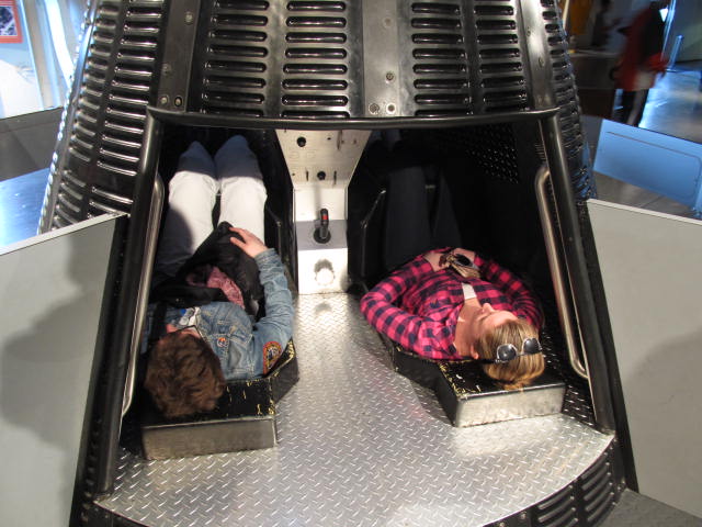 We also climbed into the replica Gemini capsule, where a nice lady took our picture.