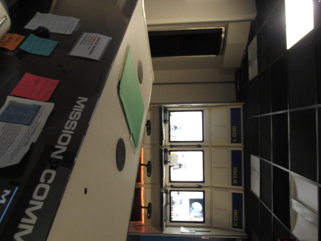 The real focus of the facility, though, is the Challenger Center, where classes come for field trips. Half the class gets to be astronauts in the space station room, while the other half are Flight Controllers in the Mission Control room. They work together over headsets to do experiments and solve problems. When I was there, they were set up for a mission to Comet Halley.