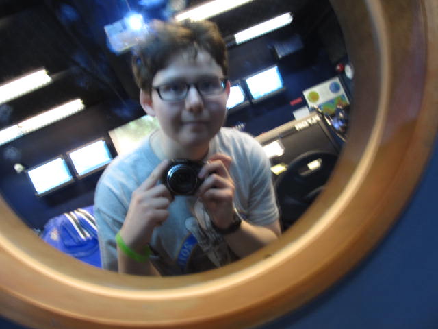 I tried to take a self-portrait in one of the mirrors they had in the Mission Control room: